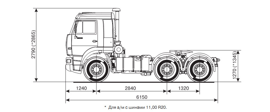 | Размер шин | 11,00 R20 (300 R508) или 11,00 R22,5 (бескамерные) (В зависимости от комплектации) |