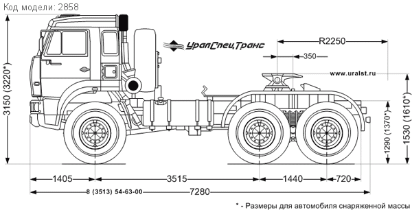 | - нагрузка на переднюю ось, кг (полная масса) | 7150 (7200*) |