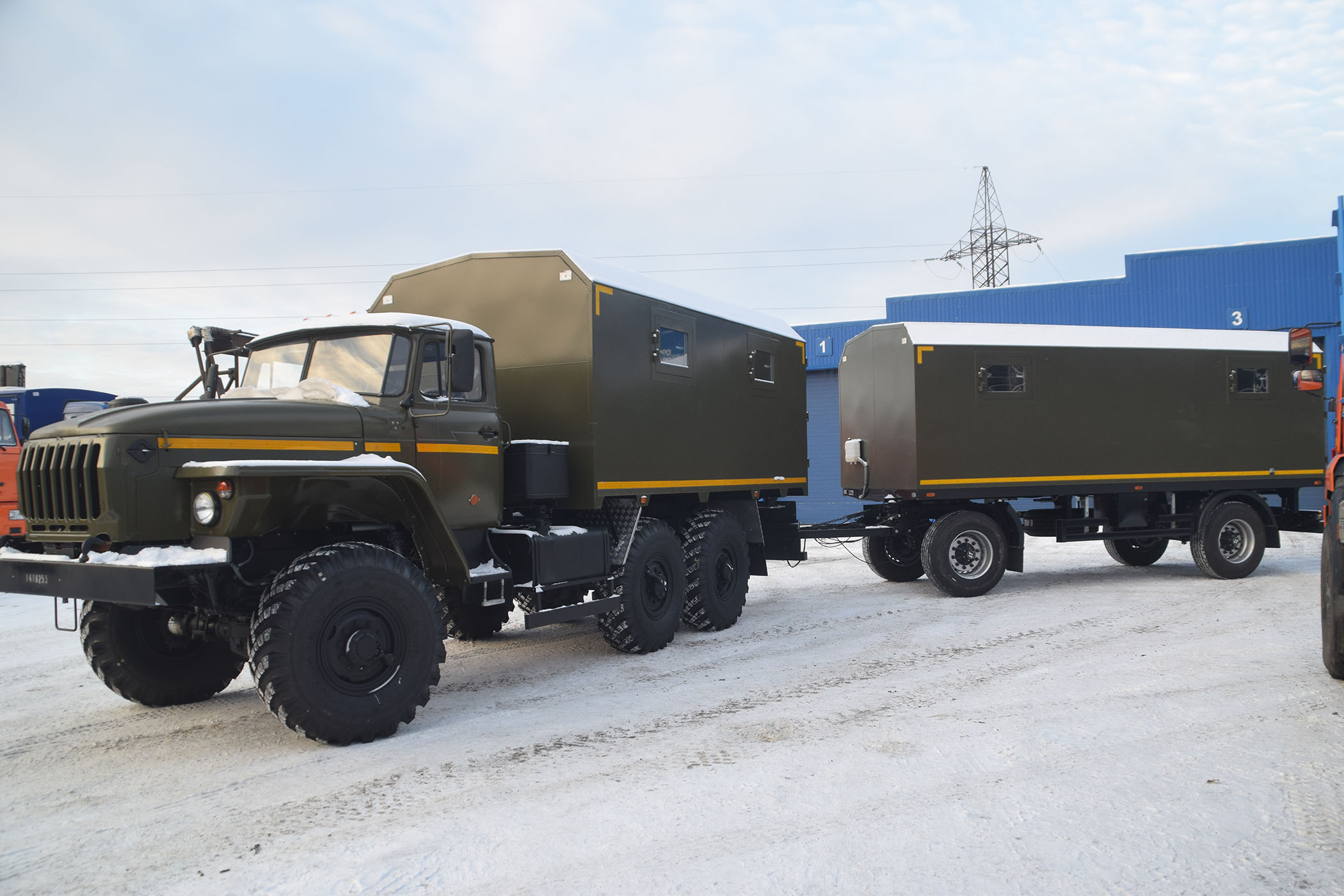 Фургон общего назначения на шасси УРАЛ 5557 бескапотный со спальным местом, боковая дверь, задние распашные двери, утепление, 1 глухое окно, средства безопасности, средства ЗИП