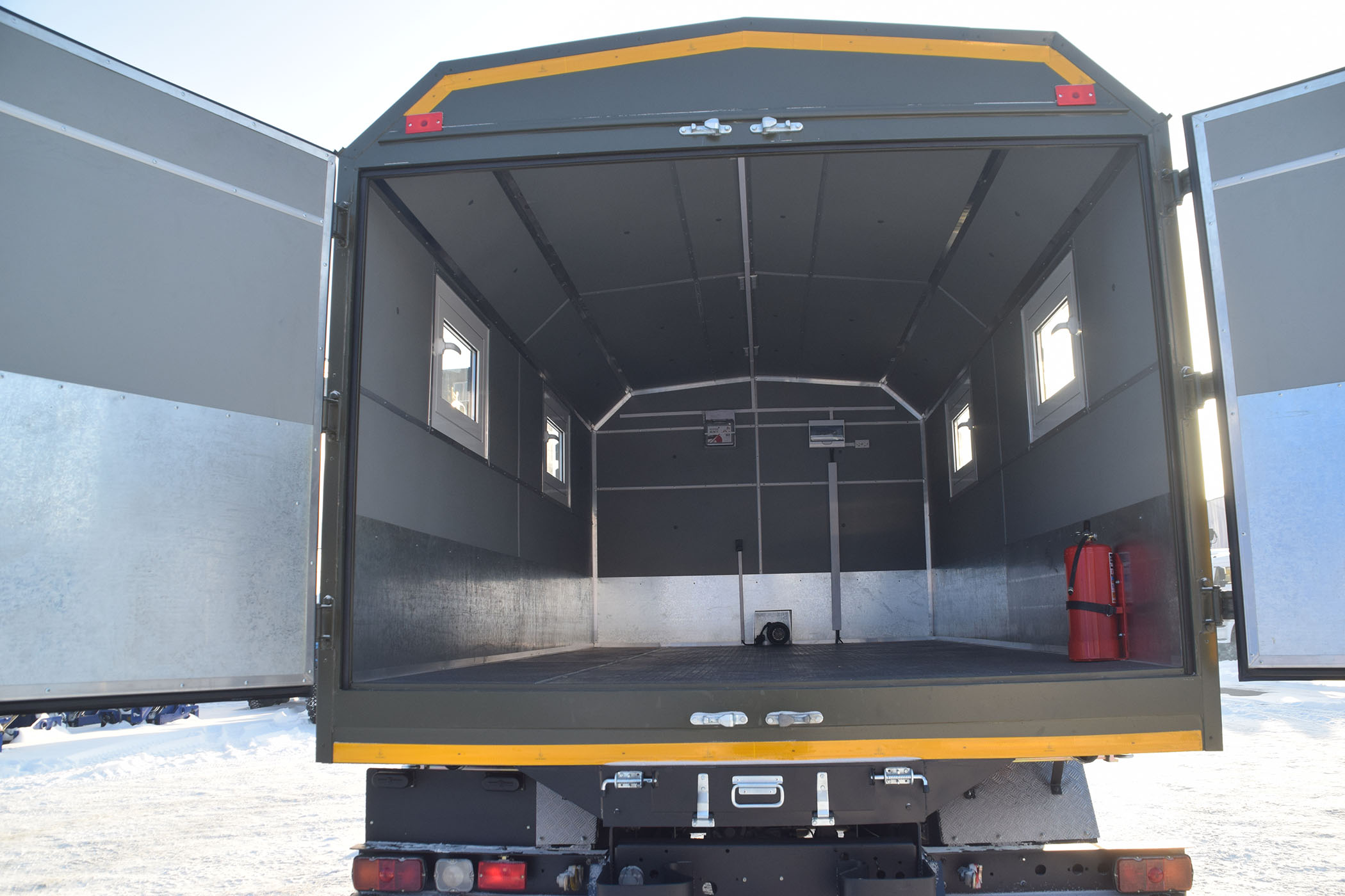 Фургон общего назначения на шасси УРАЛ 4320 бескапотный со спальным местом, боковая дверь, задние распашные двери, утепление, 1 глухое окно, средства безопасности, средства ЗИП