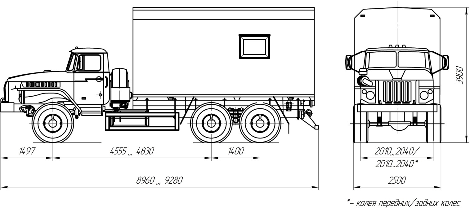 Фургон общего назначения на шасси УРАЛ 5557 бескапотный со спальным местом, боковая дверь, задние распашные двери, утепление, 1 глухое окно, средства безопасности, средства ЗИП