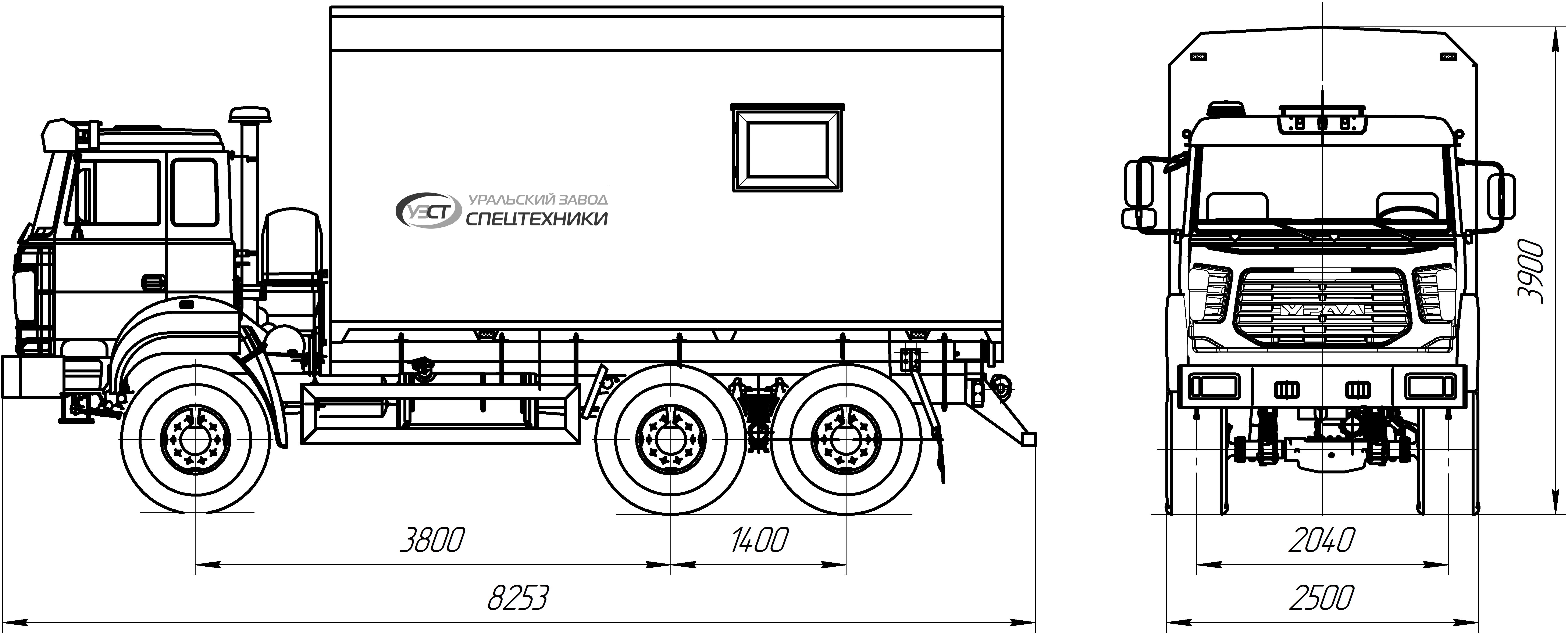 6х6, 230 л.с., КПП ЯМЗ-2361, без спального места, каркасно-металлический фургон