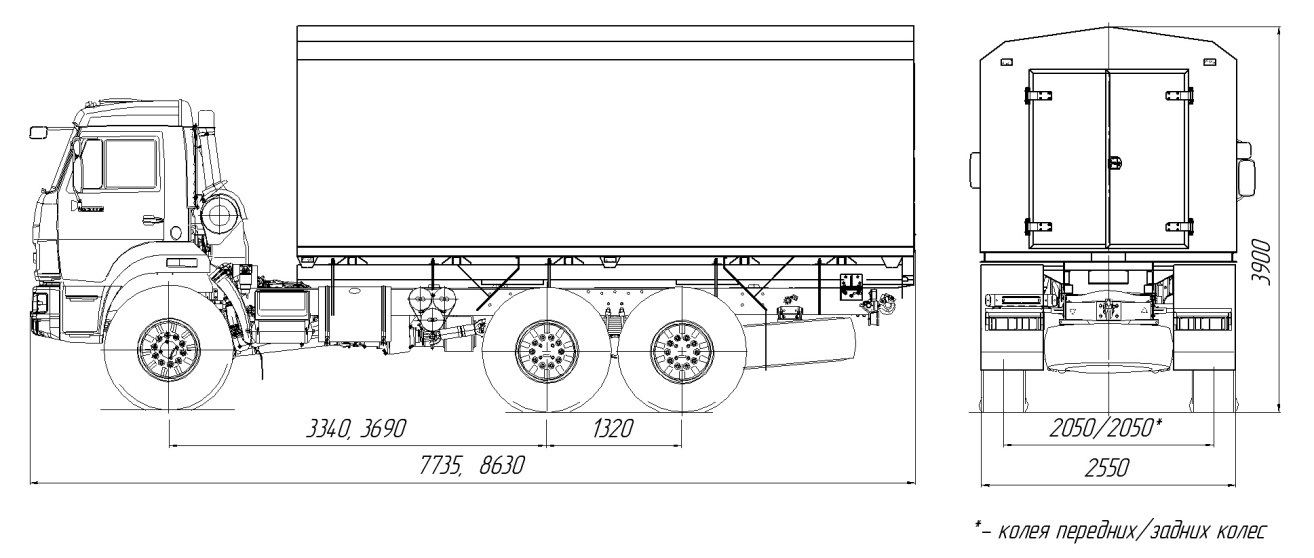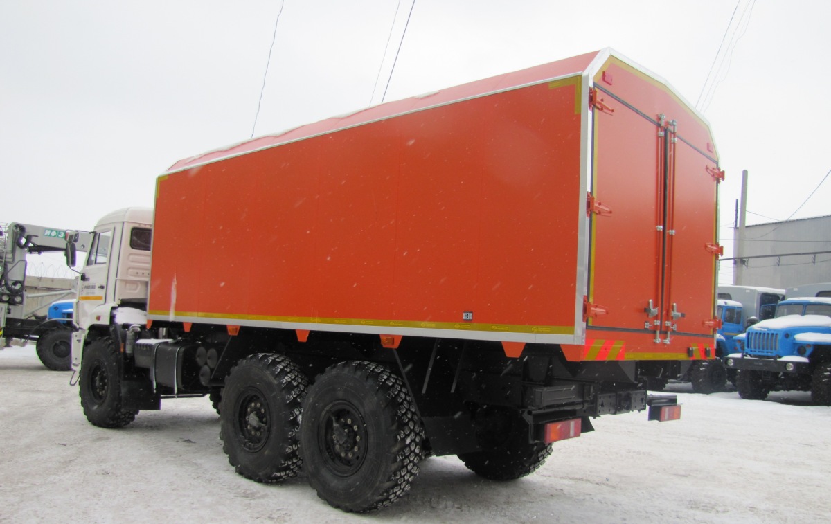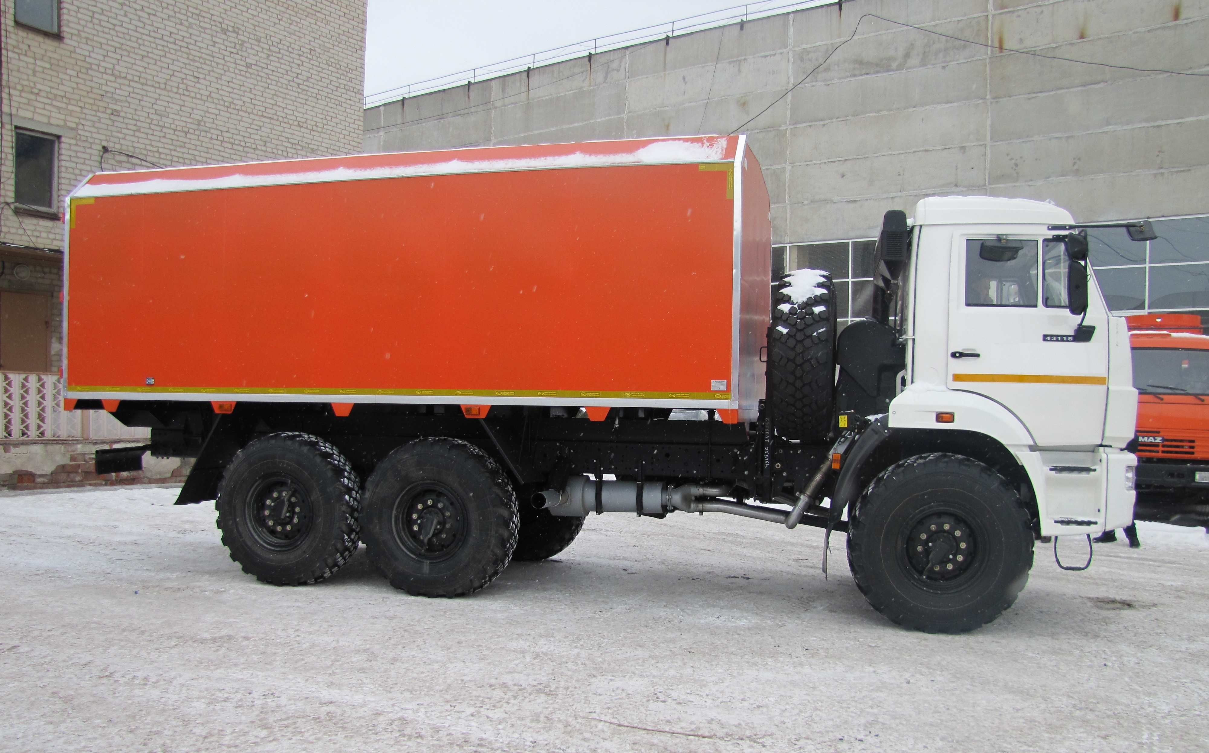 Фургон общего назначения на шасси КАМАЗ-43118 без спального места, боковая дверь, задние распашные двери, утепление, 1 глухое окно, средства безопасности, средства ЗИП