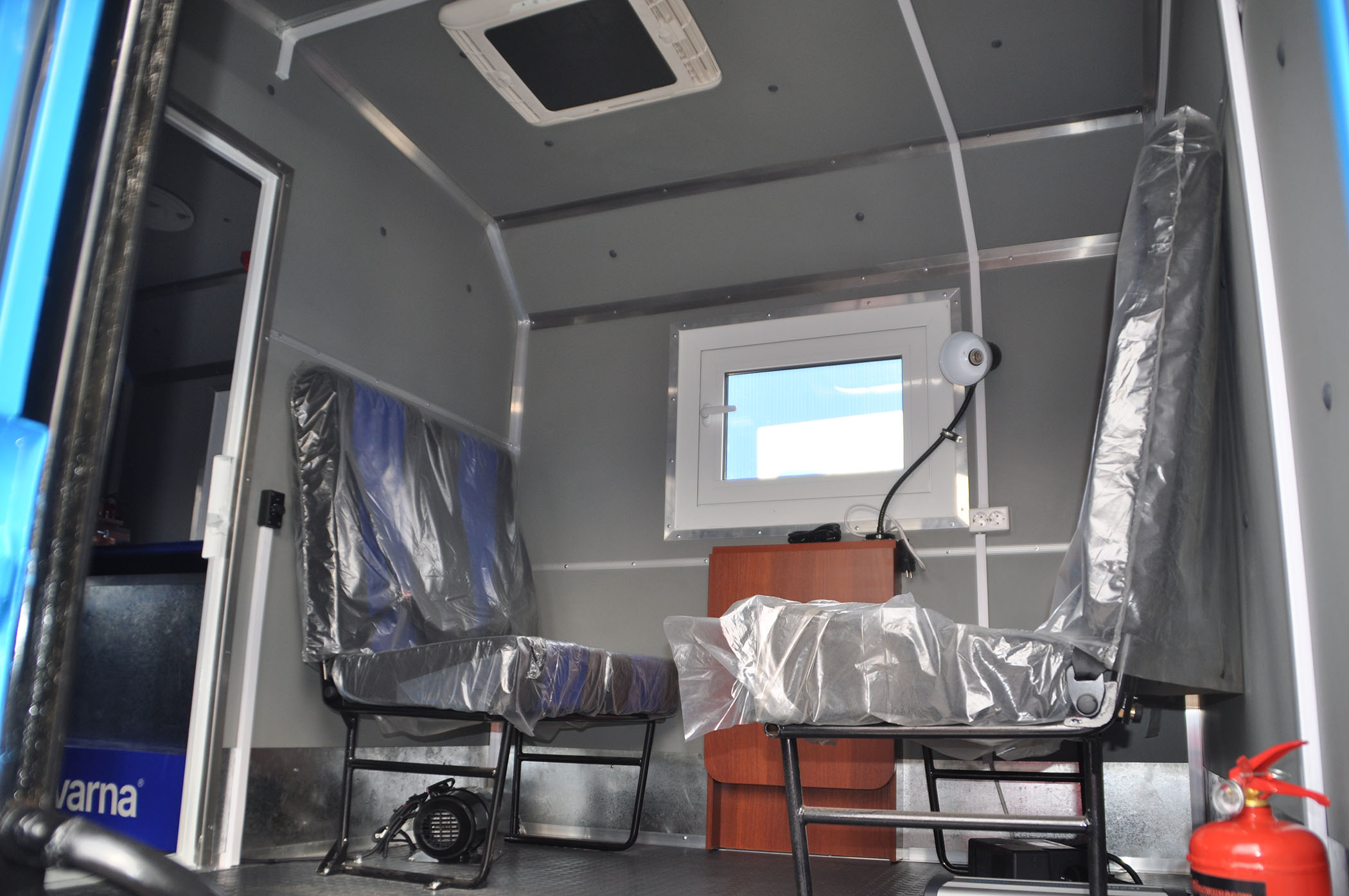 светильник местного освещения 220В - 2 шт плафоны освещения 24В - 1 шт. освещение входа с автоматическим включением при открывании двери. розетка 220В – 2 шт. розетка 380В – 1 шт |