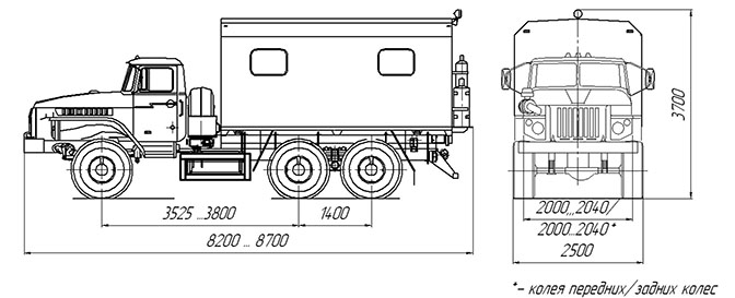 6х6, 230 л.с., КПП ЯМЗ-2361, перевозка бригады до 6 человек, сэндвич-панели, стол