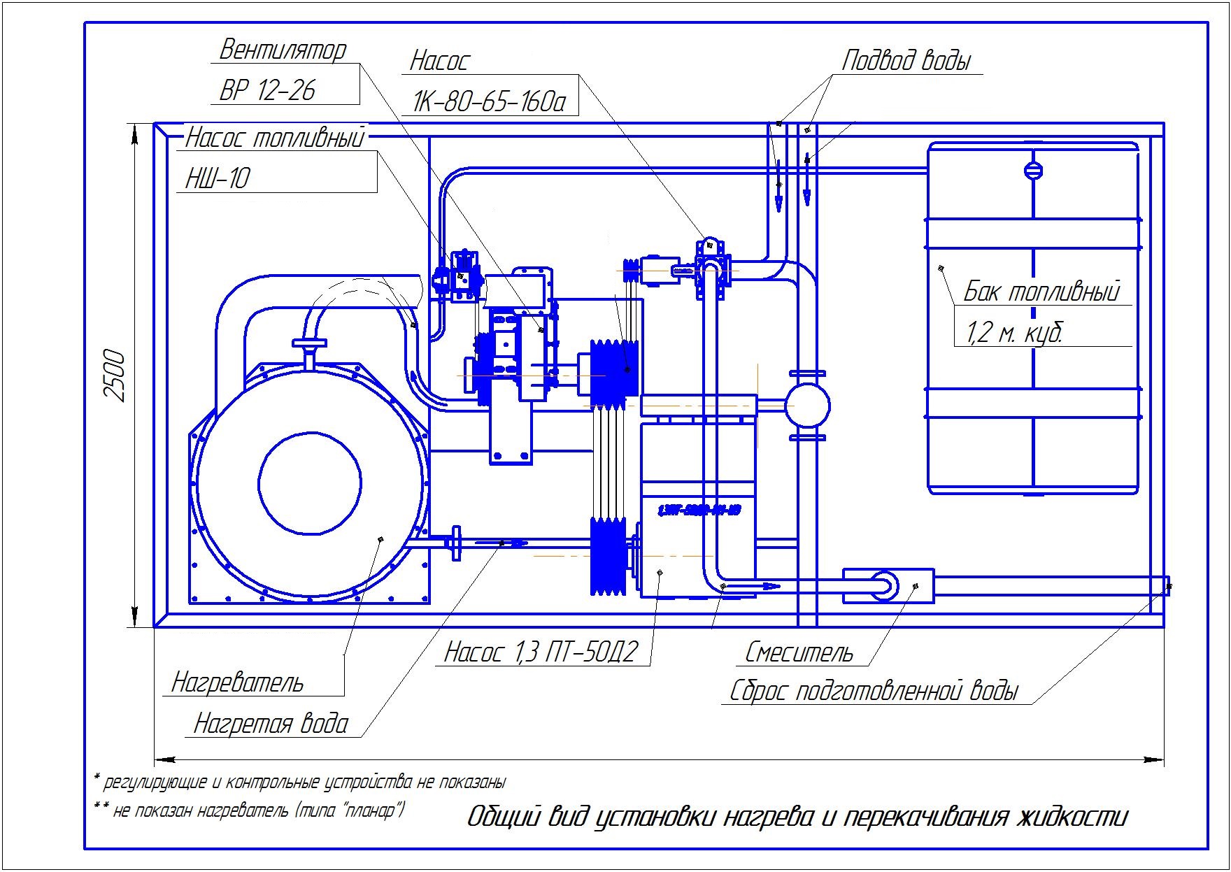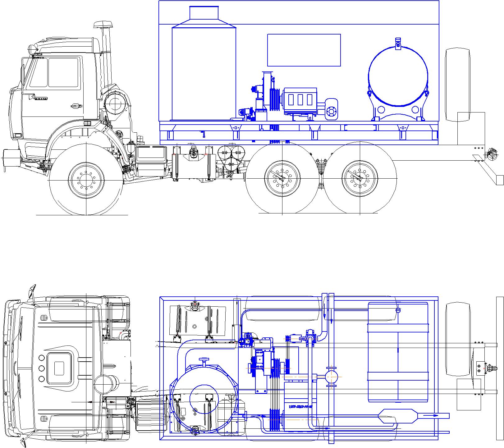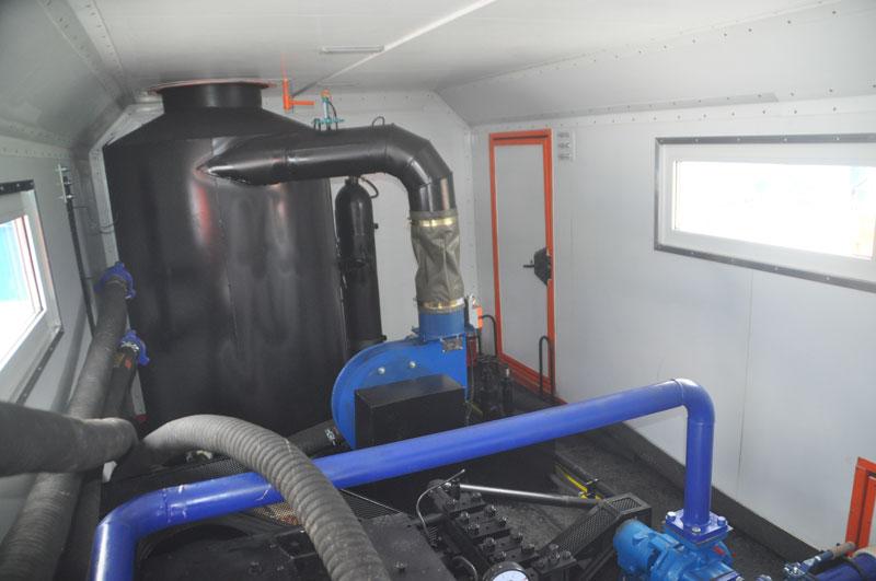 Конструкция: нагреватель, насос для закачки воды, насос для рециркуляци воды воды, смеситель для воды, система охлаждения, вентилятор, бак для топлива, рукава напорно-всасывающие для воды, трубопроводы для нефти, пульт управления, Кунг: бескаркасный из сэндвич-панелей с системой обогрева.