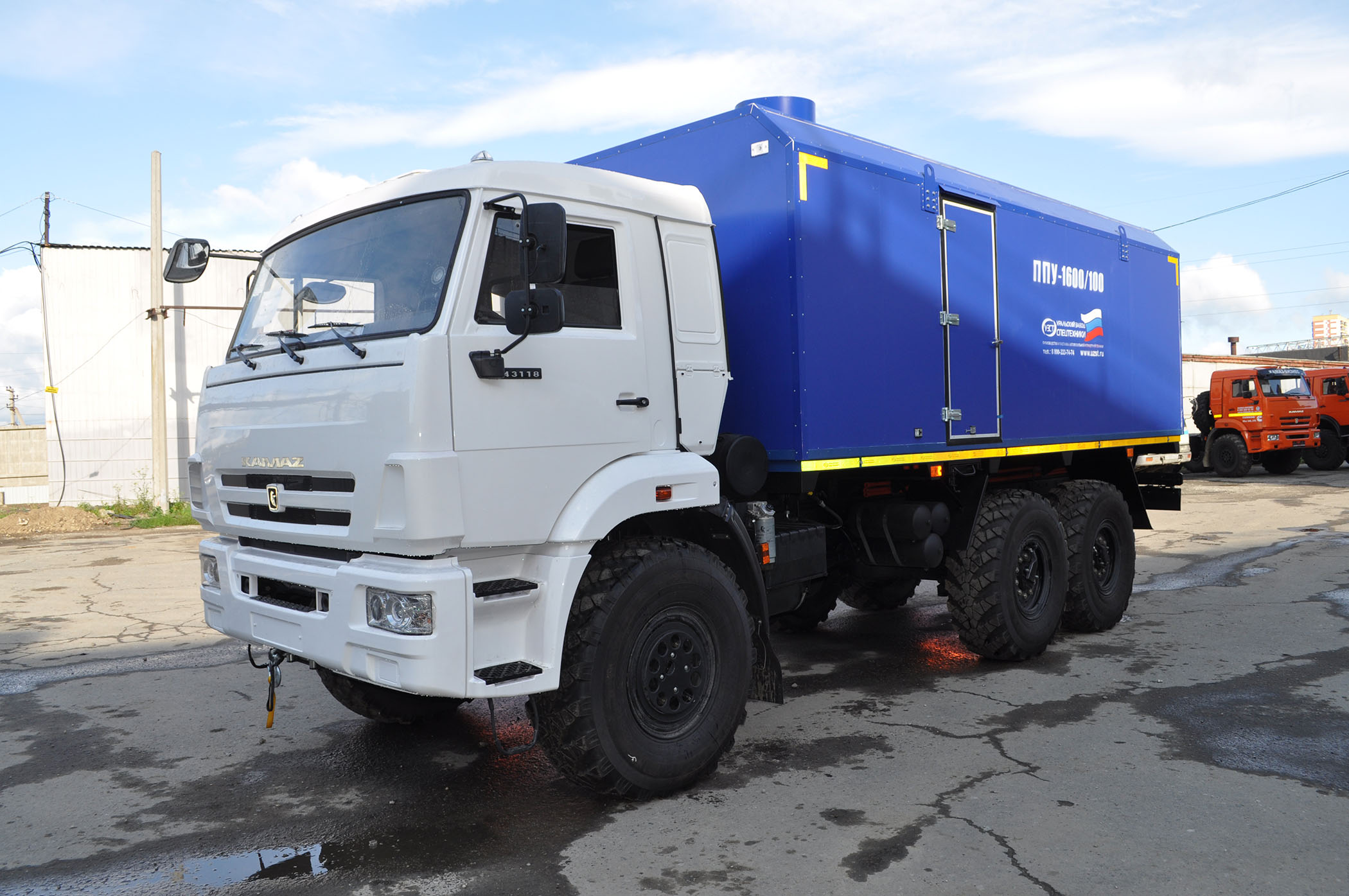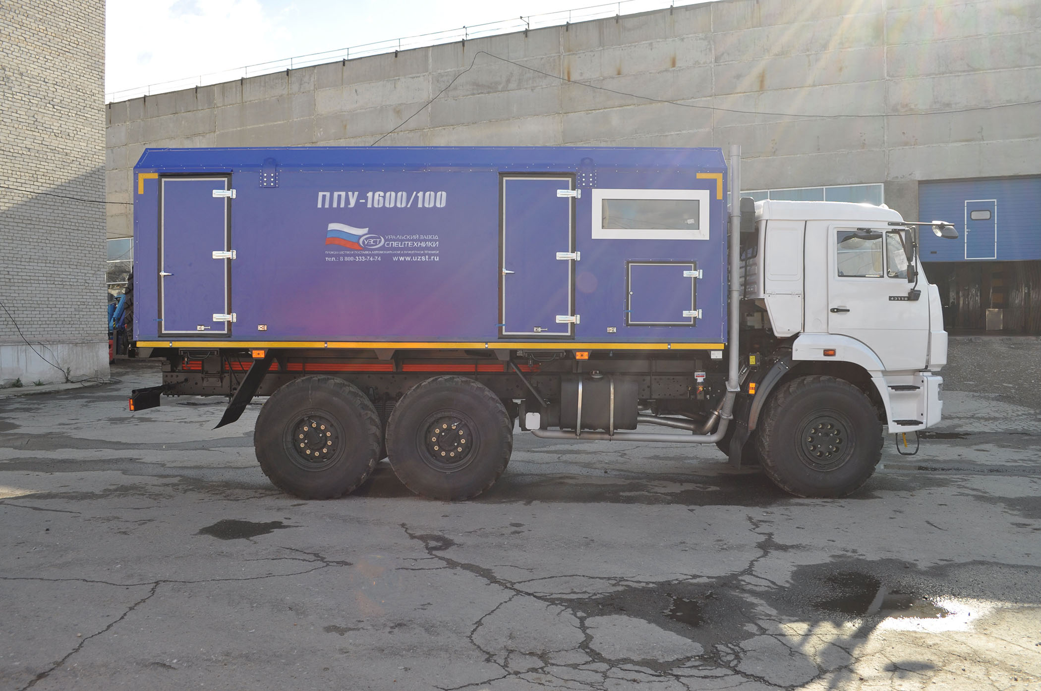 ППУ 1600/100 на шасси КАМАЗ-43118 без спального места, насос 1,1ПТ-25Д1М2 или 2,3ПТ-25Д1М2, вентилятор ВР12-26-4, топливный насос НШ-10, бак для воды 5,2 куб.м., топливные баки 2x0,3 куб.м., устройство горелочное - двухфорсуночное (форсунки Danfoss), КИП, средства безопасности