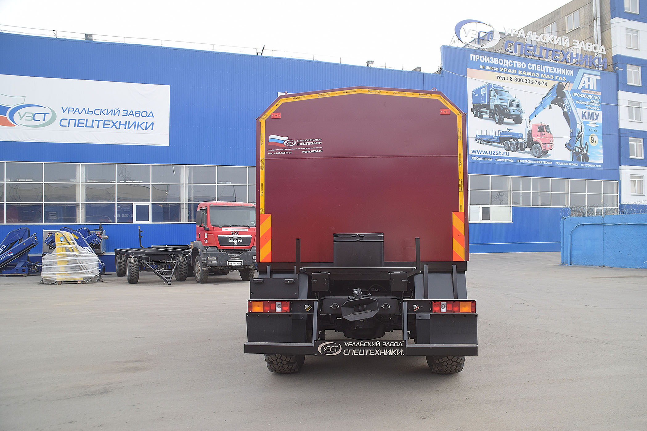 ППУ-1600/100 УЗСТ6890-04 на шасси УРАЛ 5557-1151-60/70 без спального места, насос 1,1ПТ-25Д1М2 или 2,3ПТ-25Д1М2, вентилятор ВР12-26-4, топливный насос НШ-10, бак для воды 5,2 куб.м., топливные баки 2x0,3 куб.м., устройство горелочное - двухфорсуночное (форсунки Danfoss), КИП, средства безопасности