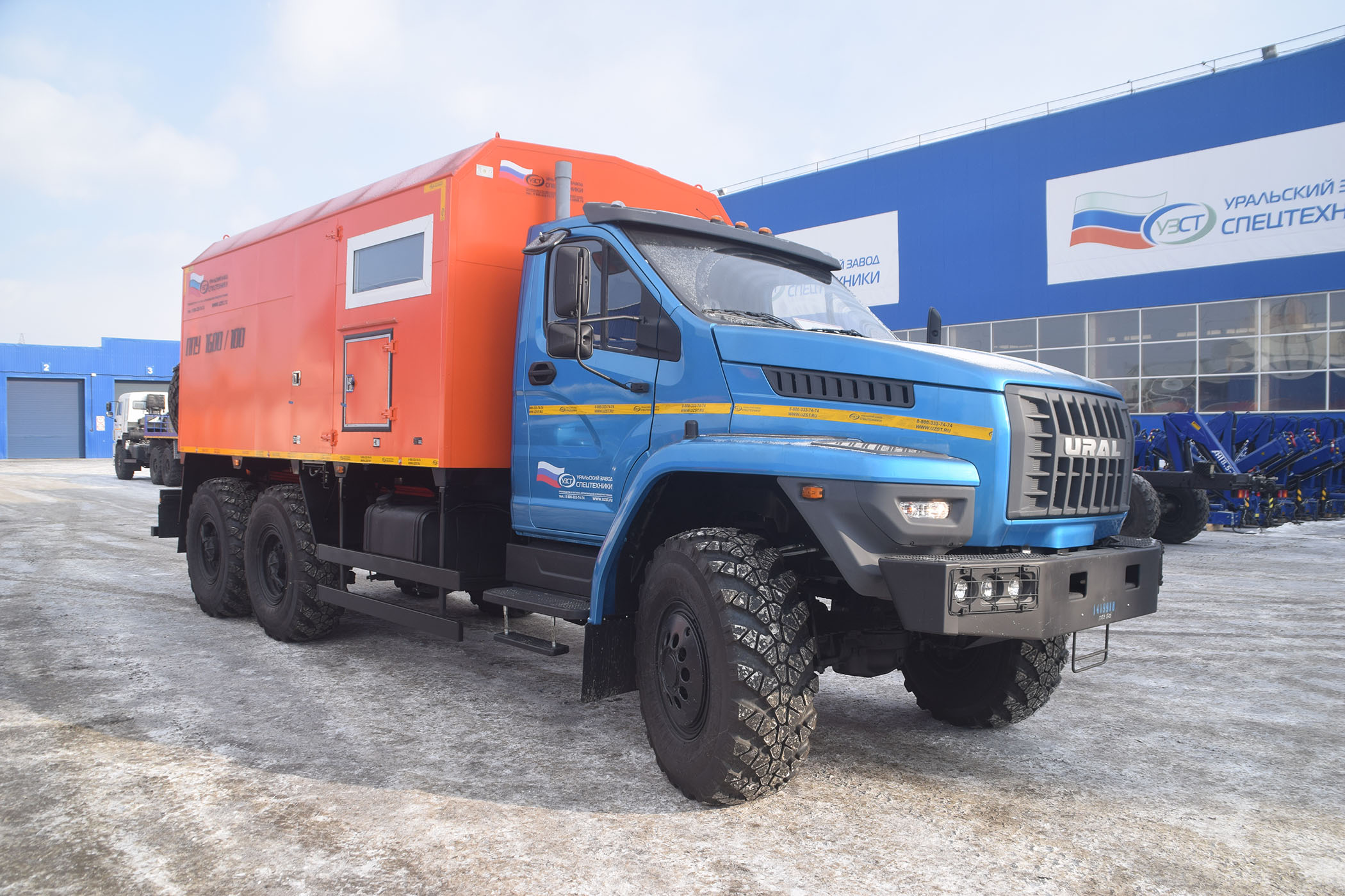 ППУ-500 УЗСТ6890-09 на шасси УРАЛ 4320-1951-60 без спального места, насос 1,1ПТ-25Д1М2, вентилятор ВР12-26-4, топливный насос НШ-10, бак для воды 5,2 куб.м., топливные баки 2x0,3 куб.м., устройство горелочное - двухфорсуночное (форсунки Danfoss), КИП, средства безопасности