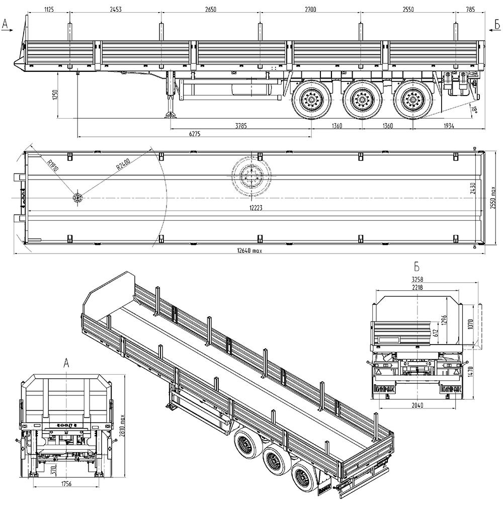 34200 кг, шины 385/65R22,5/6+1, длина 12223 мм, ССУ 1250 мм, пневматическая подвеска