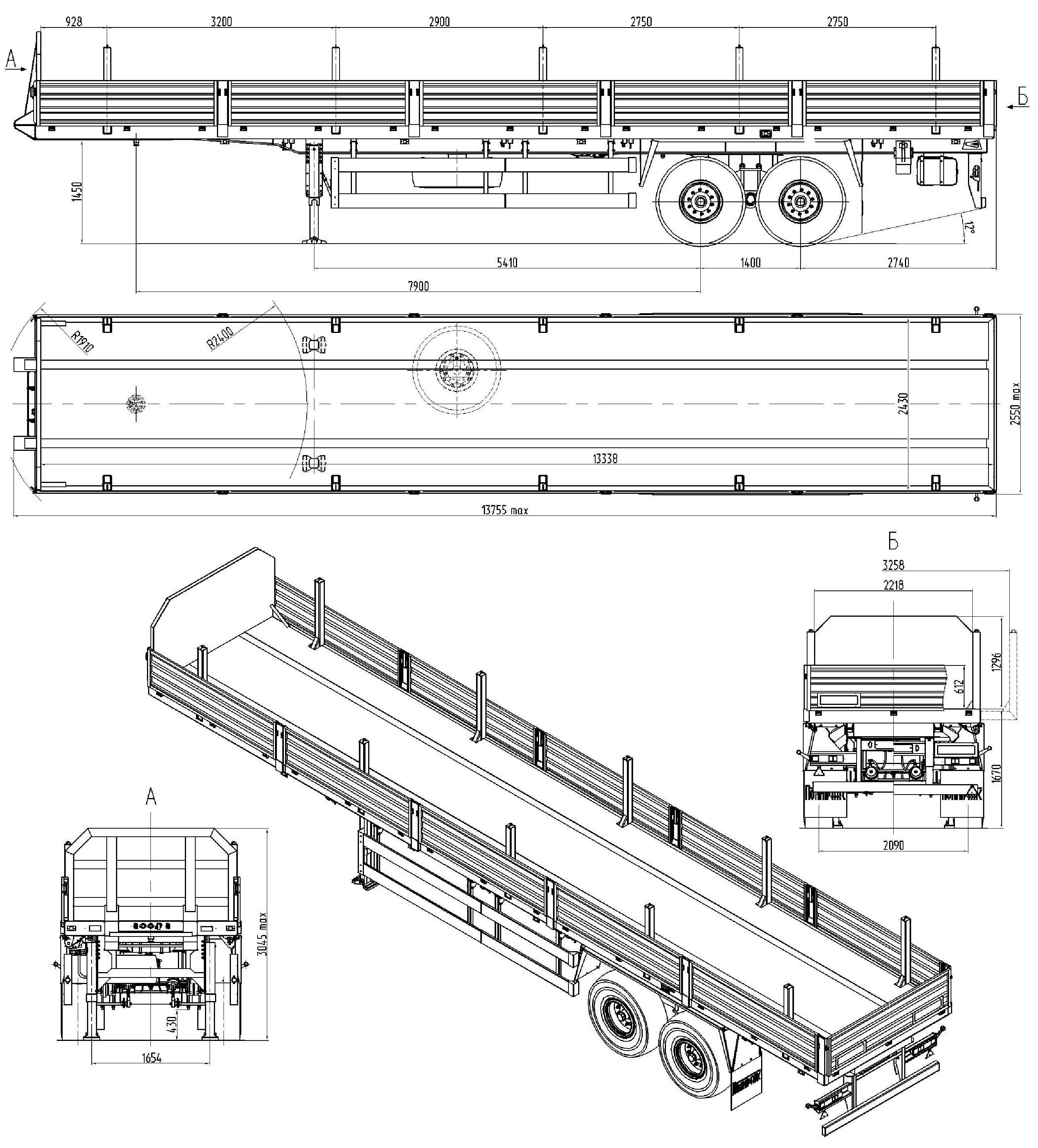 Полуприцеп бортовой ТСП 9417-0000020 длина 13338 мм Полуприцеп бортовой ТСП 9417-0000020 длина 13338 мм