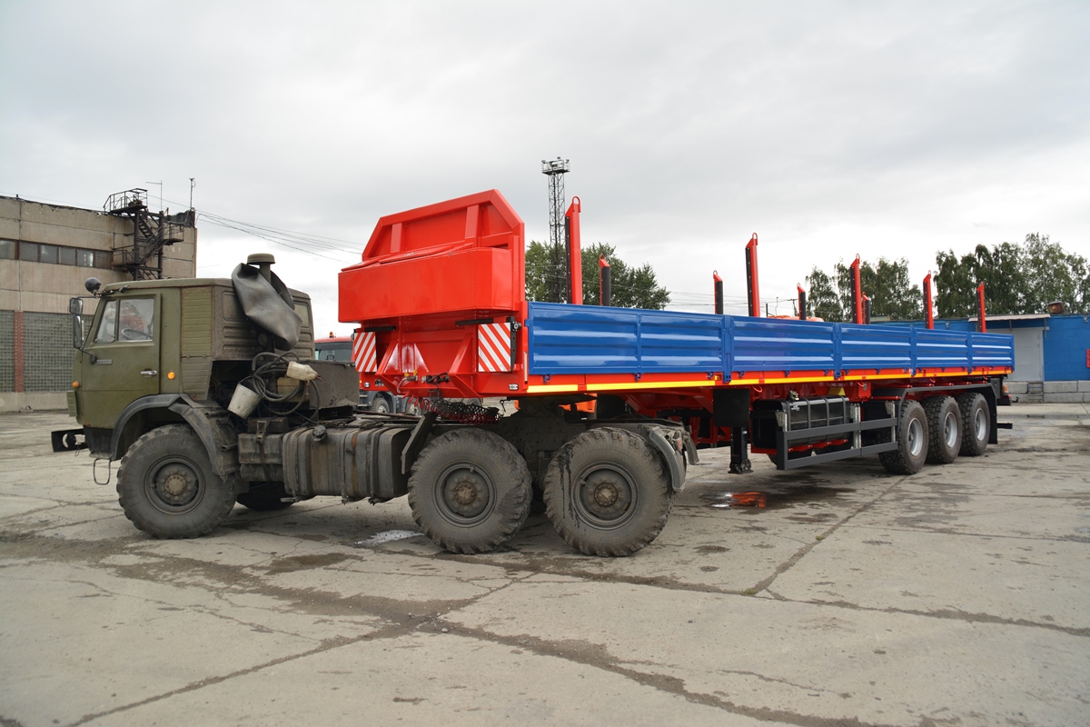 Опции: лебедки для увязки груза с барабаном под трос и ремень, корзина для перевозки бортов, задний усиленный щит, Ш-образные коники для НКТ трубы, буровых штанг, обрезинивание коников, выдвижные или приставные лестницы |