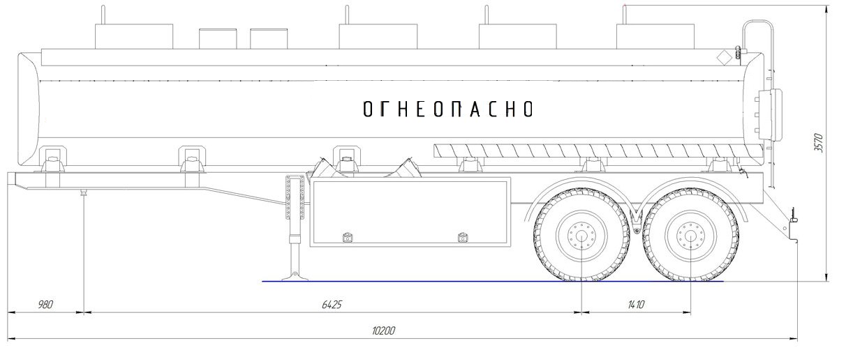 28 000 литров, прямое сечение, шины 425/85R21/4+1 или 385/65R22.5/4+1, рессорная или пневматическая подвеска