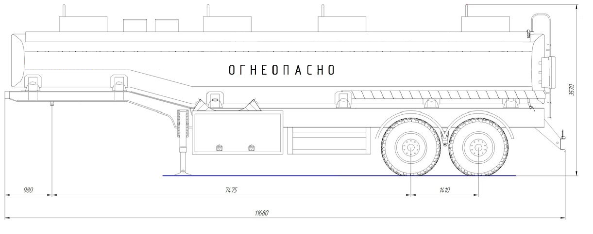 30 000 литров, прямое сечение, шины 425/85R21/4+1 или 385/65R22.5/4+1, рессорная или пневматическая подвеска