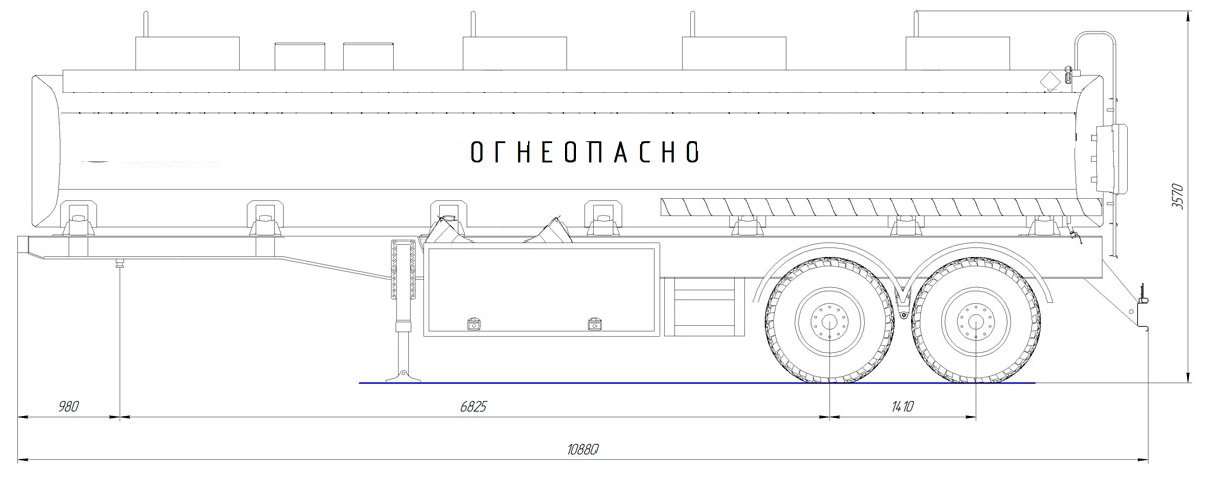 30 000 литров, прямое сечение, шины 425/85R21/4+1 или 385/65R22.5/4+1, рессорная или пневматическая подвеска