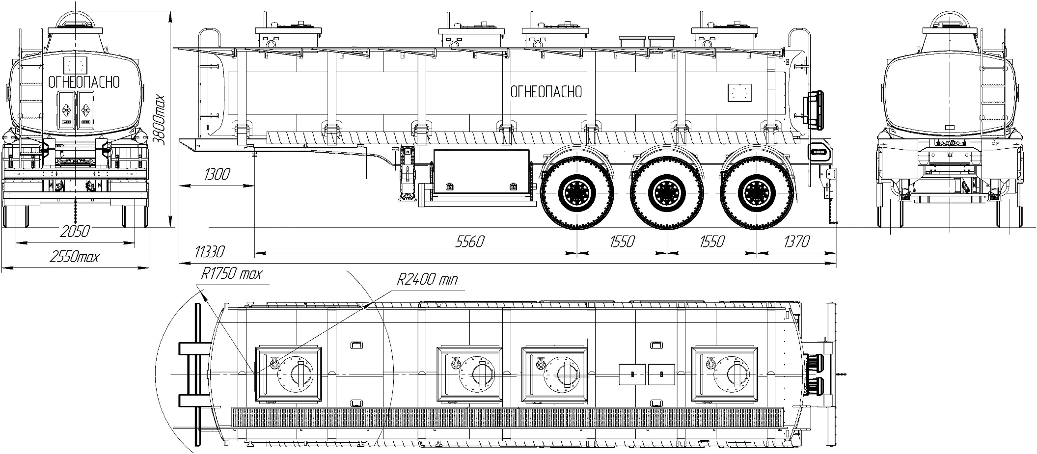 30 000 литров, прямое сечение, шины 425/85R21/6+1 или 385/65R22.5/6+1, рессорная или пневматическая подвеска