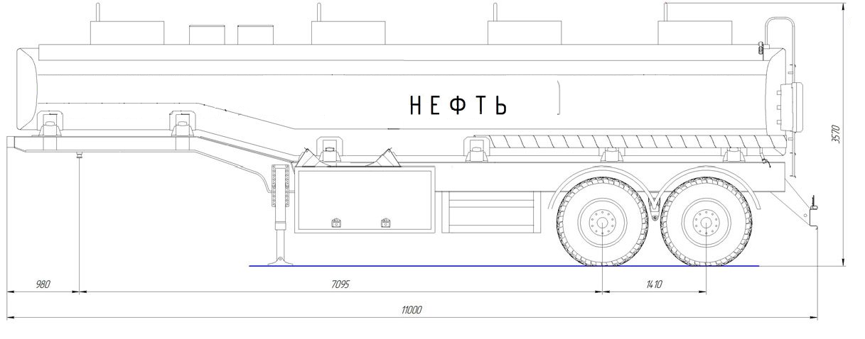 24 000 литров, прямое сечение, шины 425/85R21/4+1 или 385/65R22.5/4+1, рессорная или пневматическая подвеска