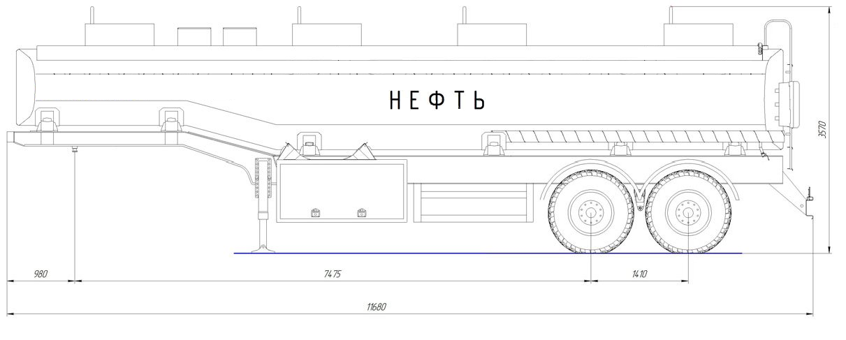 30 000 литров, переменное сечение, шины 425/85R21/4+1, рессорная или пневматическая подвеска