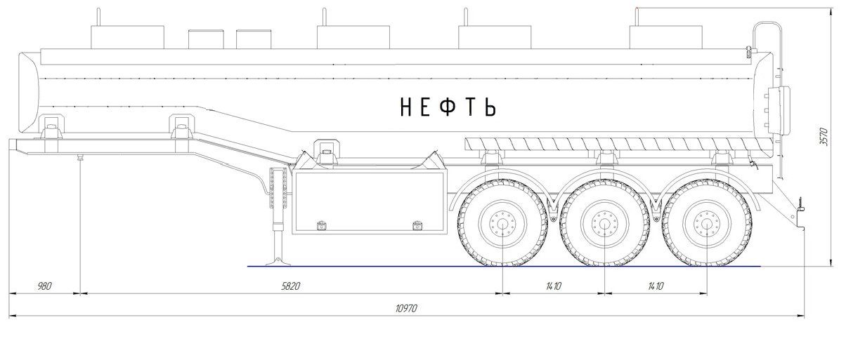 34 000 литров, прямое сечение, шины 425/85R21/6+1 или 385/65R22,5/6+1, рессорная или пневматическая подвеска