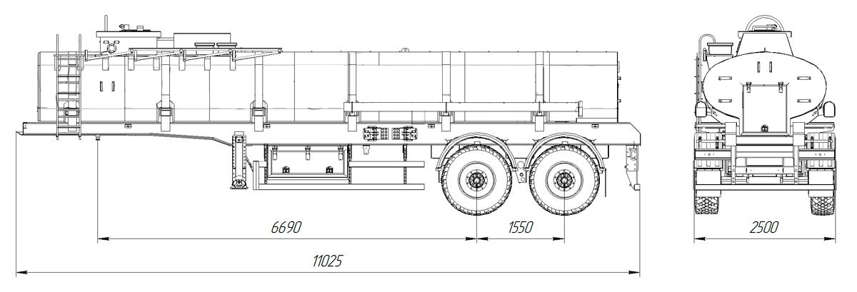 20 000 литров, прямое сечение, шины 425/85R21 или 385/65R22,5/4+1, рессорная или пневматическая подвеска