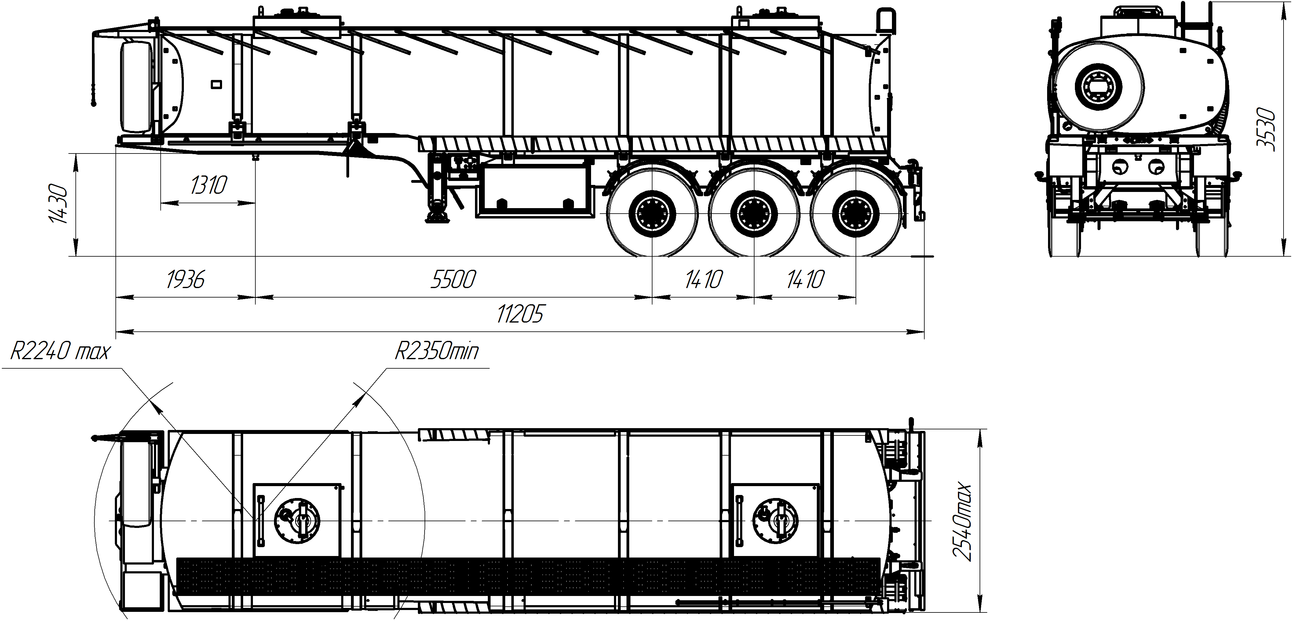 25 000 литров, переменное сечение, шины 425/85R21/6+1, рессорная или пневматическая подвеска, утепление 50 или 100 мм