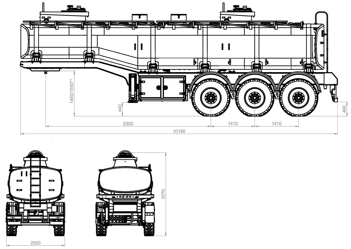 30 000 литров, прямое сечение, шины 425/85R21/6+1 или 385/65R22.5/6+1, рессорная или пневматическая подвеска