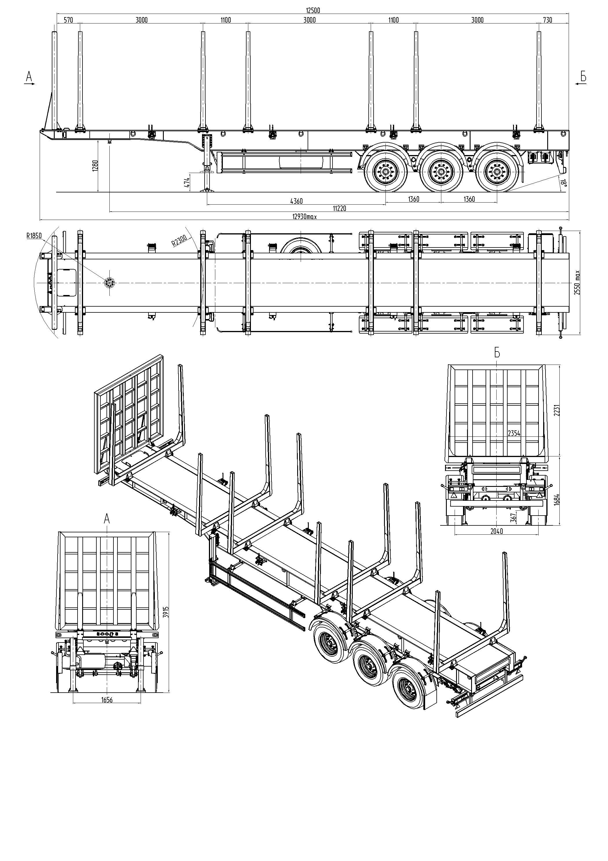 шины 385/65R22,5/6+1, длина 12500 мм, ССУ 1280 мм, подвеска пневматическая BPW