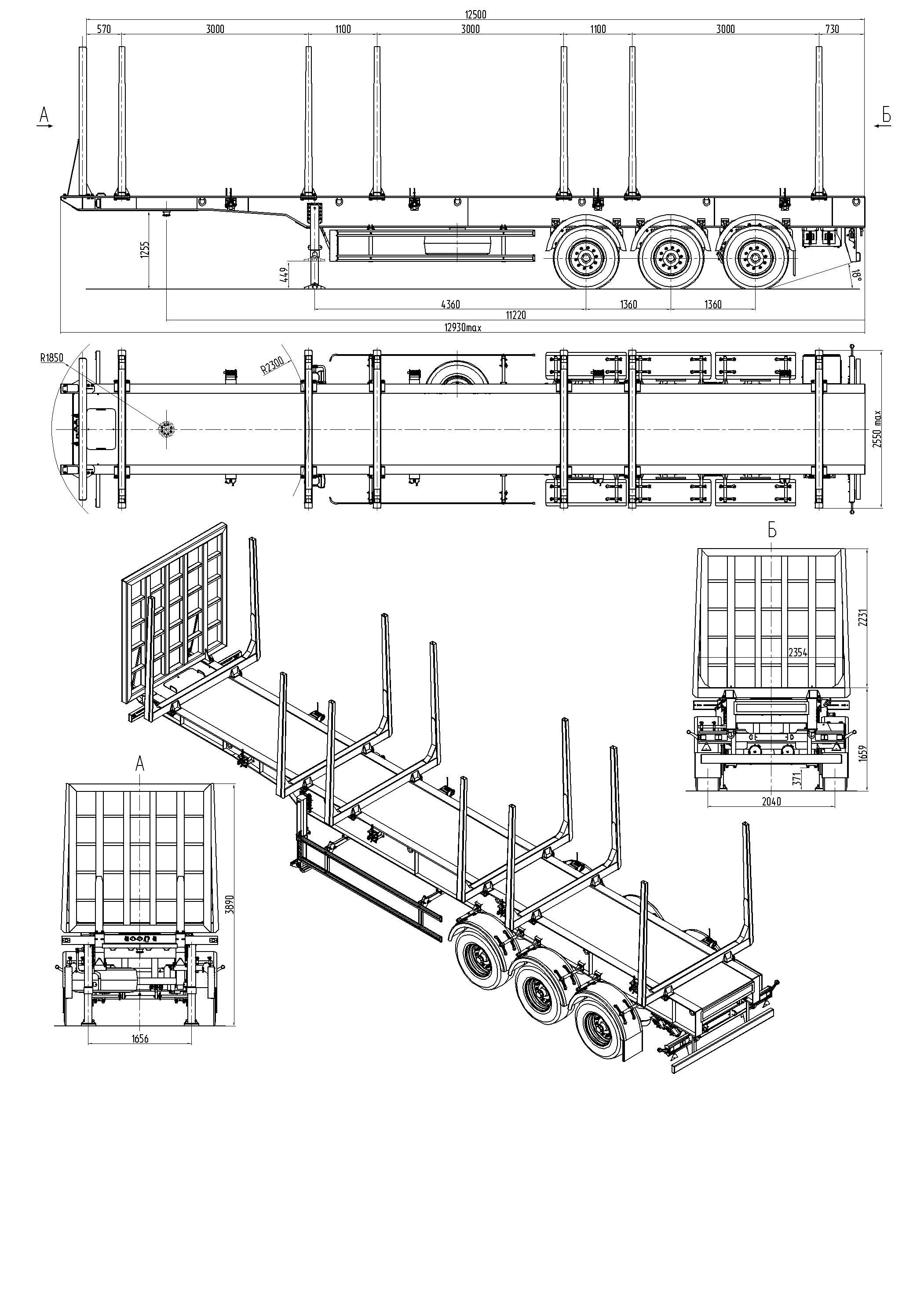 шины 385/65R22,5/6+1, длина 12500 мм, ССУ 1255 мм, подвеска пневматическая
