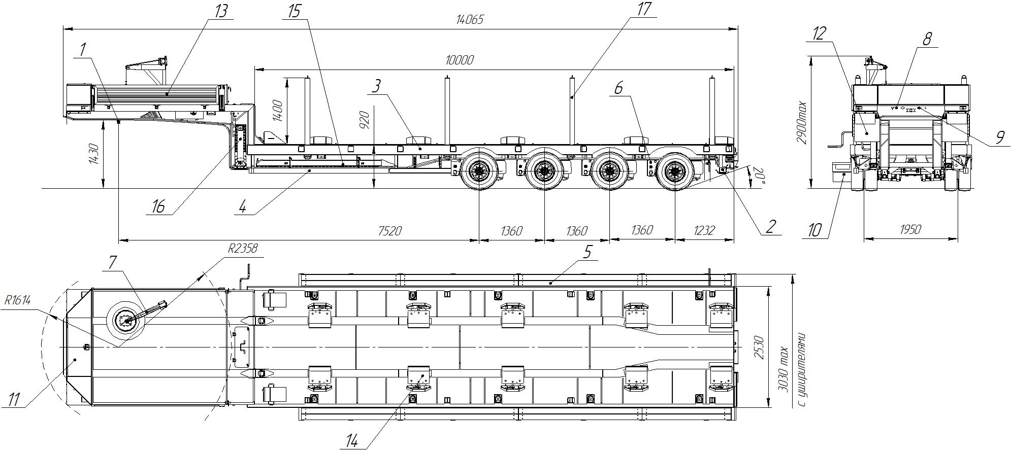 полуприцеп-тяжеловоз ППН-50, приставные алюминиевые трапы, пневматическая подвеска, вставные стойки полуприцеп-тяжеловоз ППН-50, приставные алюминиевые трапы, пневматическая подвеска, вставные стойки