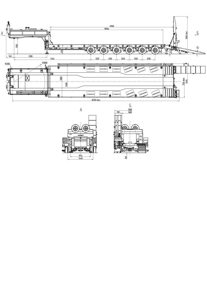 69500 кг, шины 255/70R17,5/24+2, платформа 10966 (11960 до трапов) x 3080 мм, уширители до 3480 мм, ССУ- под заказ, пневматическая подвеска