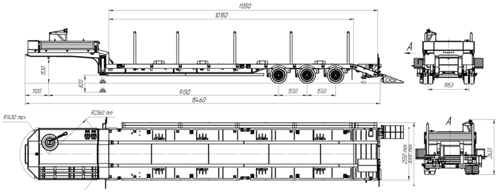 40000 кг, шины 235/75R17,5/12+2, платформа 11350 по трапам, уширители до 3000 мм, ССУ под заказ, пневматическая подвеска, треугольные аппарели, вставные стойки или раздвижные коники, с бортами на платформе или без них