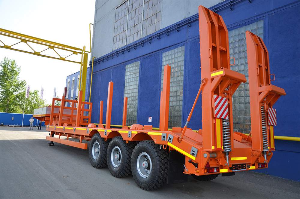 45000 кг, шины 445/65R22,5 или 395/85R20 / 6+1, платформа 10300 (11080 до трапов) x 2500 с уширителями до 3000 мм, механические трапы, ССУ 1510 мм, рессорная подвеска, съемные стойки 1500 мм