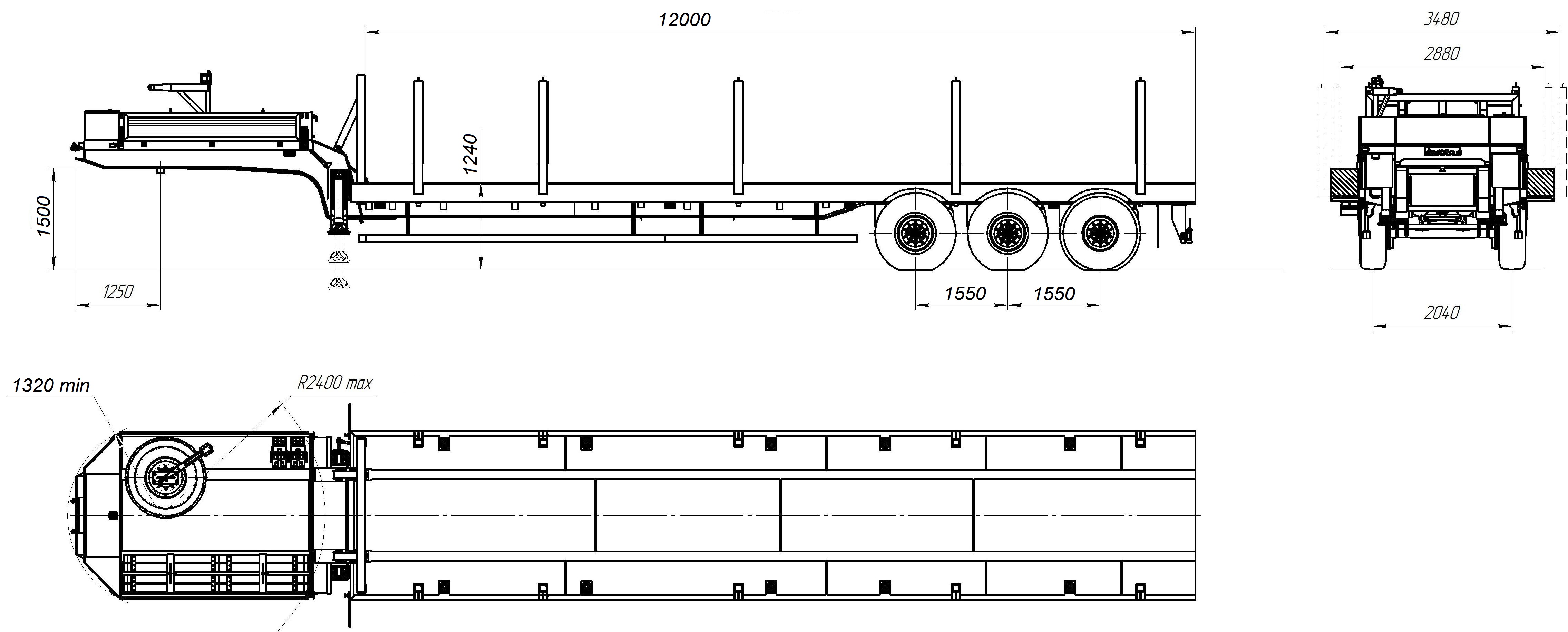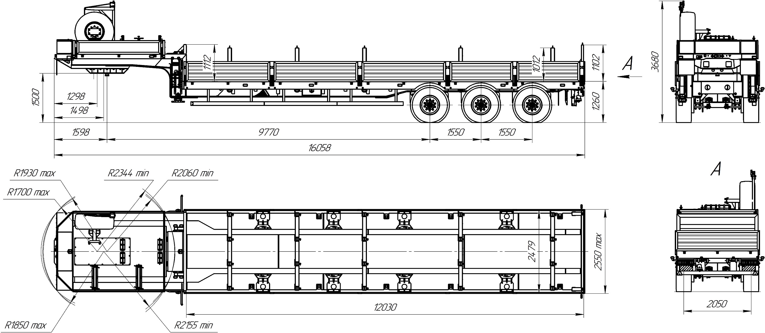 | Максимальная масса снаряженного полуприцепа, кг | 12500 |
