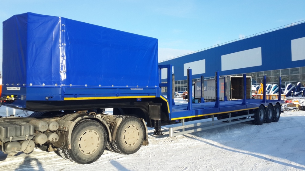 45000 кг, шины 445/65R22,5 или 395/85R20 / 6+1, платформа 10300 (11080 до трапов) x 2500 с уширителями до 3000 мм, механические трапы, ССУ 1510 мм, пневматическая или рессорная подвеска, съемные стойки 1500 мм, съемные борта