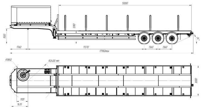 Полуприцеп ППВ-45, без трапов, платформа 13000 мм, пневматическая или рессорная подвеска, стойки Полуприцеп ППВ-45, без трапов, платформа 13000 мм, пневматическая или рессорная подвеска, стойки