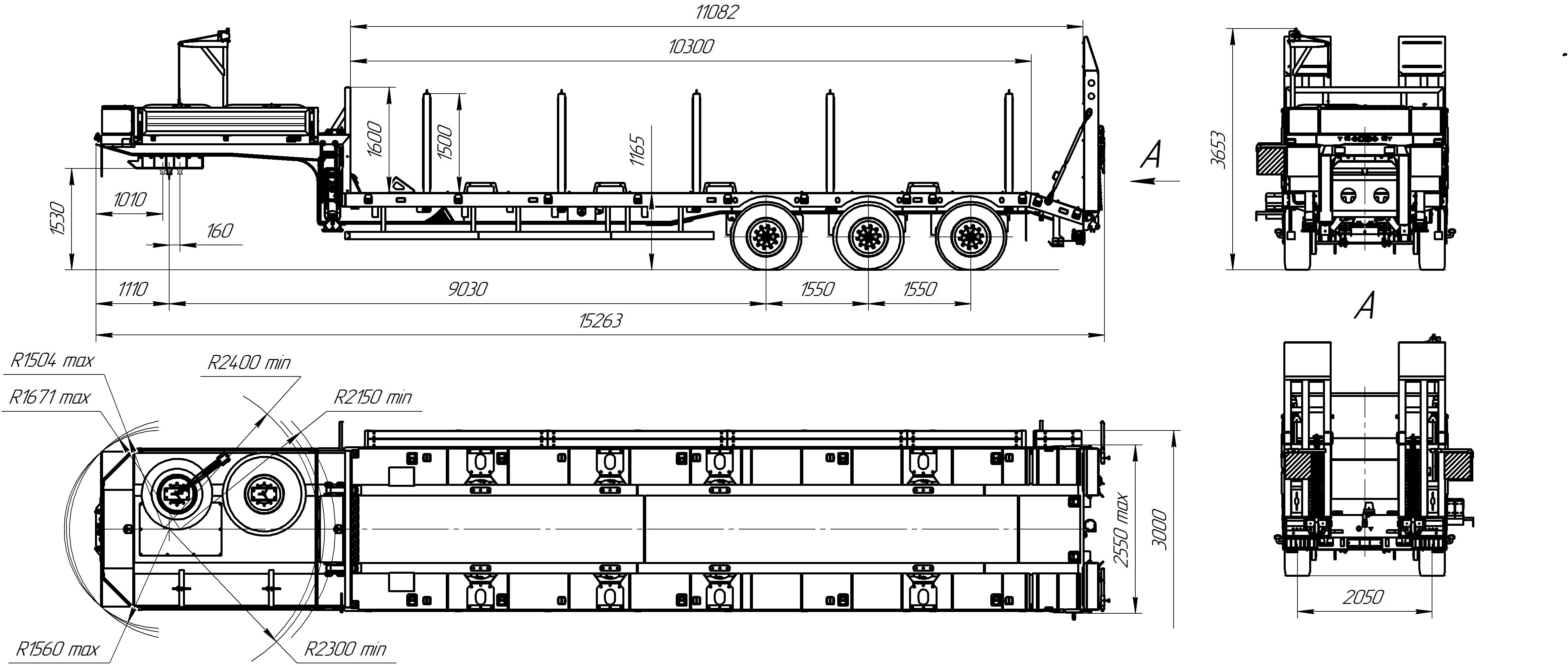 39000 кг, шины 385/65R22,5 или 445/65R22,5 / 6+1, платформа 11080 до трапов) x 2500 с уширителями до 3000 мм, ССУ 1510 мм, пневматическая или рессорная подвеска, съемные стойки 1500 мм, механические трапы