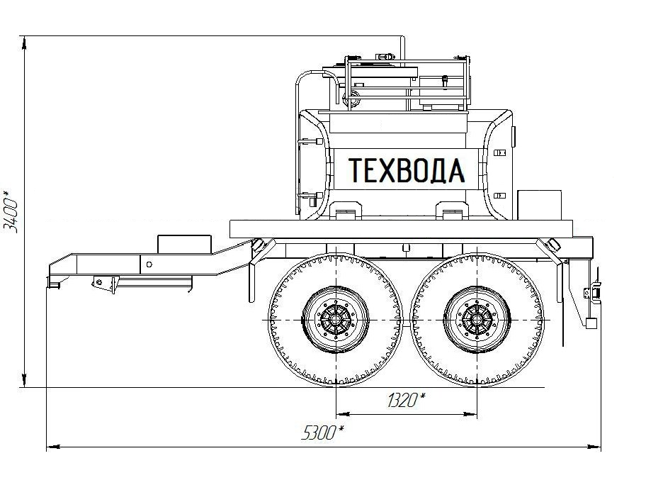 Надписи ТЕХВОДА – с левой, правой сторон, на заднем днище