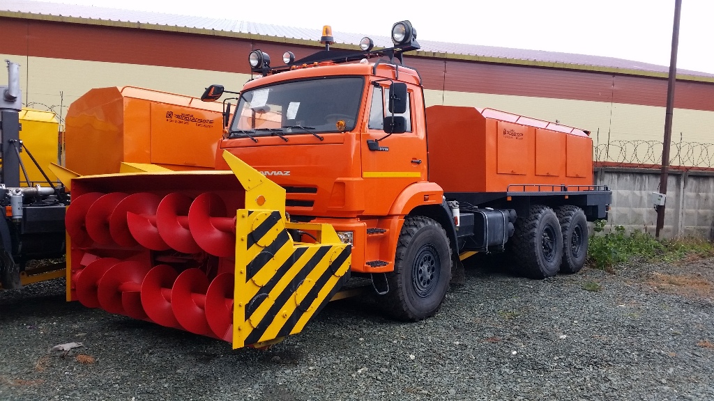 Шнекороторный снегоочиститель духмоторный на шасси КАМАЗ 43118