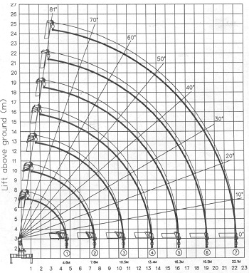 | максимальный рабочий радиус (м) | 22.1 (25.1) |