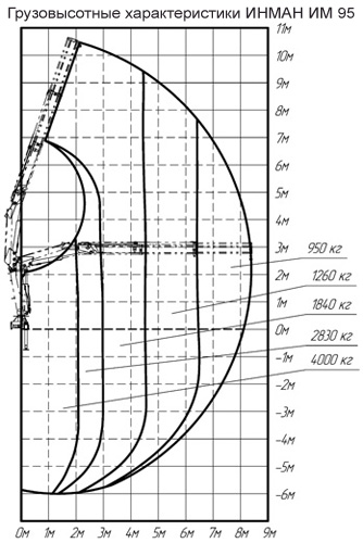 вылет 8,25 м, грузовой момент 8,50 тм, грузоподъемность 4000 кг