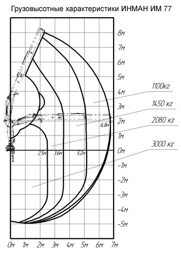 вылет 6,8 м, грузовой момент 7,5 тм, грузоподъемность 3000 кг