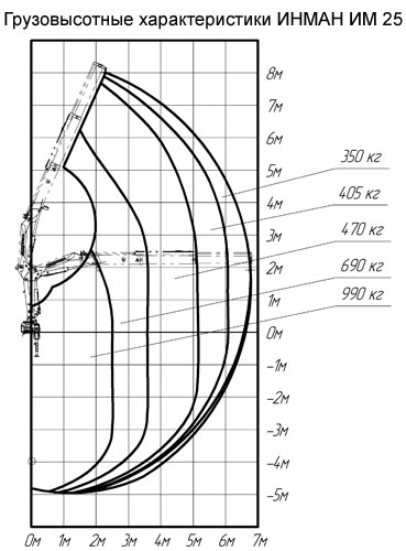 вылет 6,78 м, грузовой момент 2,52 тм, грузоподъемность 990 кг