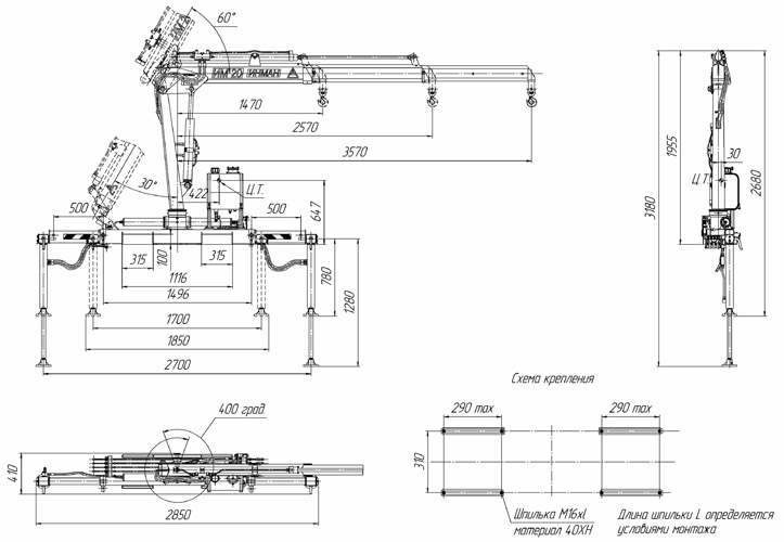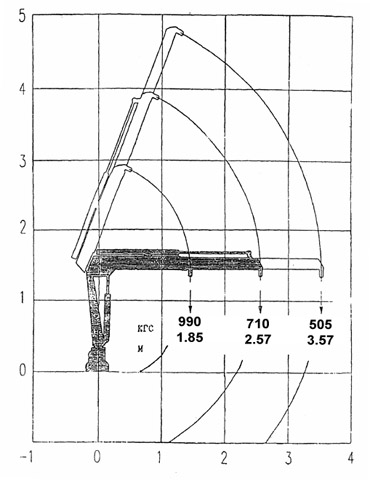 вылет 3,57 м, грузовой момент 1,83 тм, грузоподъемность 990 кг