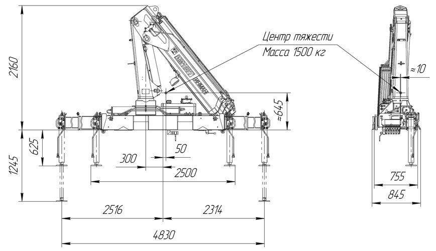 | Масса без гидронасоса, рабочей жидкости, кг | 1500 |