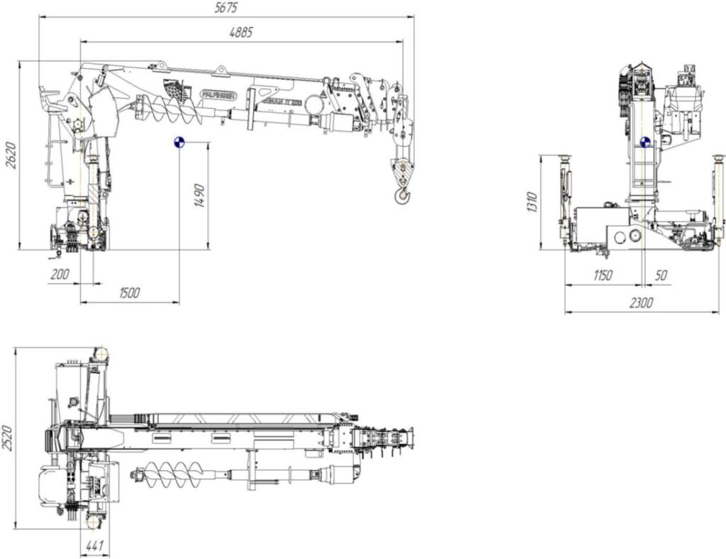 | Габаритные размеры в трансп. положении, мм | 5350 х 2520 х 2629 (без бура) 5675 х 2520 х 2620 (с буром) |