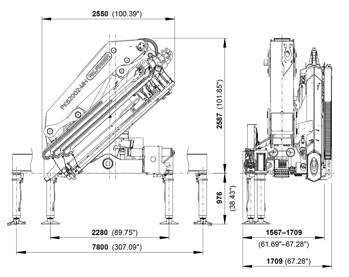 | Макс. вылет с ручным выдвижением | 23.1 м |