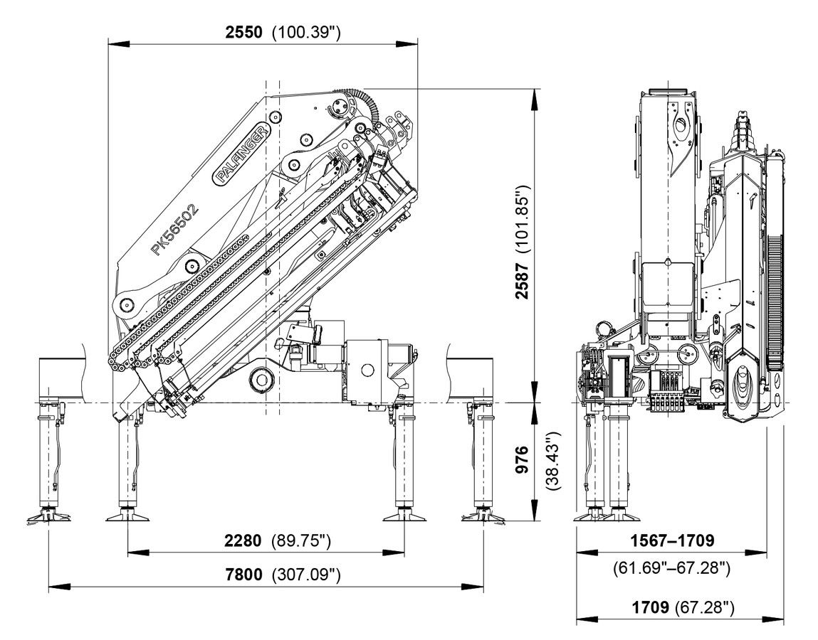 вылет 16.2 м, грузовой момент 52.2 тм, грузоподъемность 20200 кг