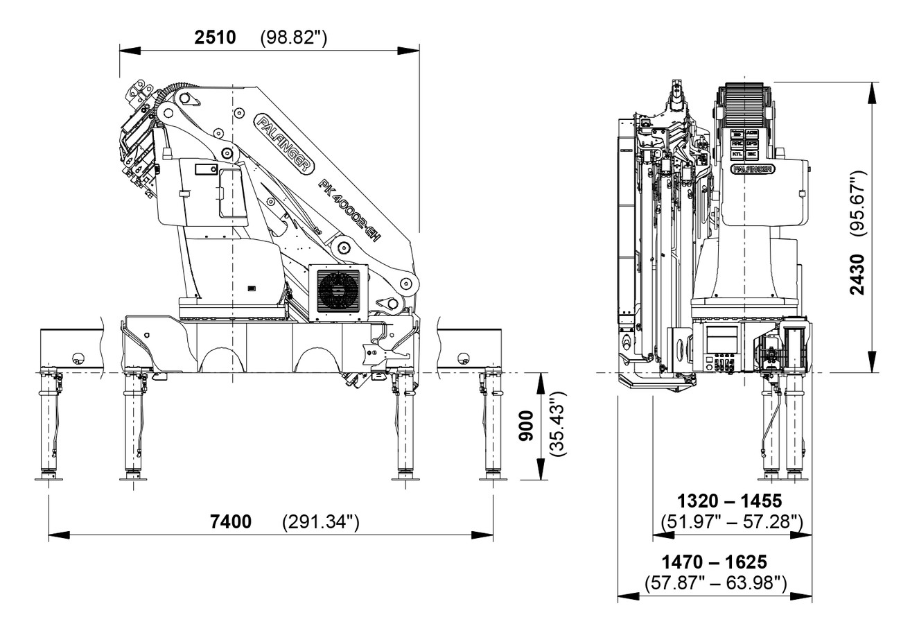 | Стандарт размаха аутригеров | 7,4 m |