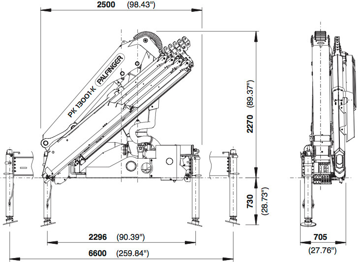 вылет 11.5 м, грузовой момент 12.7 тм, грузоподъемность 5700 кг