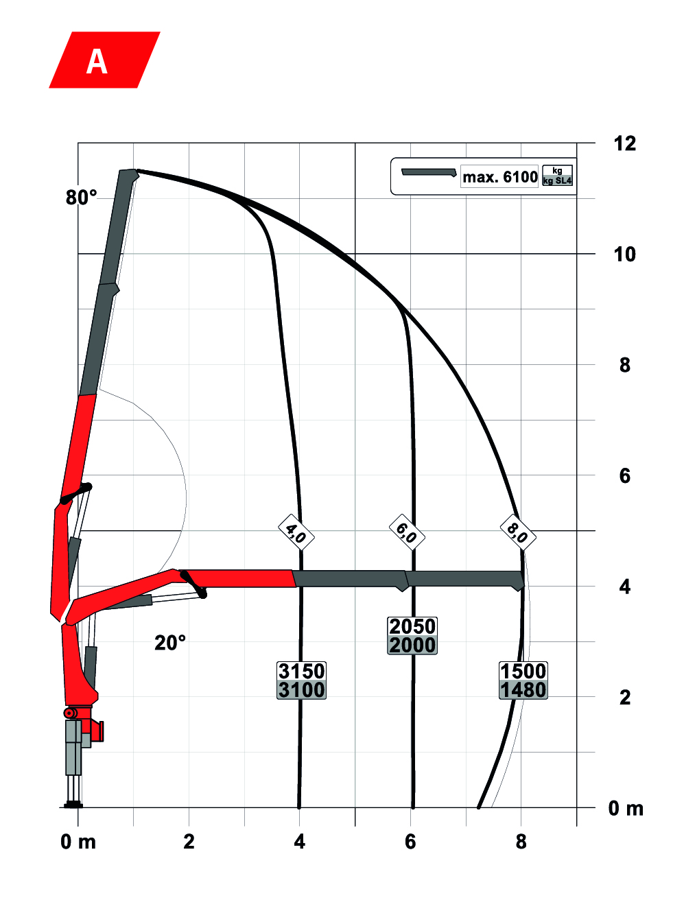 вылет 14.7 м, грузовой момент 13 тм, грузоподъемность 6200 кг